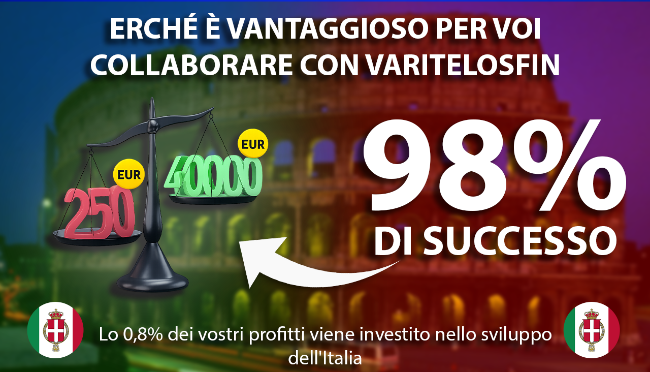 Tuttavia, Instant +820 Glant non è solo uno strumento per guadagnare, ma anche un vantaggio per l'economia italiana. Grazie al gran numero di partecipanti, i fondi affluiscono nei settori più diversi, apportando benefici all'economia, contribuendo alla creazione di nuovi posti di lavoro e stimolando la crescita economica. Questa piattaforma offre a ogni cittadino italiano l'opportunità di contribuire al rafforzamento dell'economia nazionale. L'azienda tiene conto anche degli interessi delle persone a basso reddito e ha quindi ridotto l'importo minimo di investimento a 250 euro, per dare a tutti la possibilità di diventare microinvestitori! A proposito, l'85% delle famiglie italiane spende esattamente 250 euro a settimana in cose non necessarie. Se riuscite a vivere una settimana senza queste spese, questa somma aumenterà di nove volte già nel primo mese!